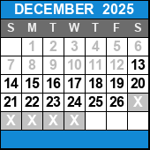 (Christmas Week Dec 20 – Jan 5 & President’s Day Feb 13-16)
